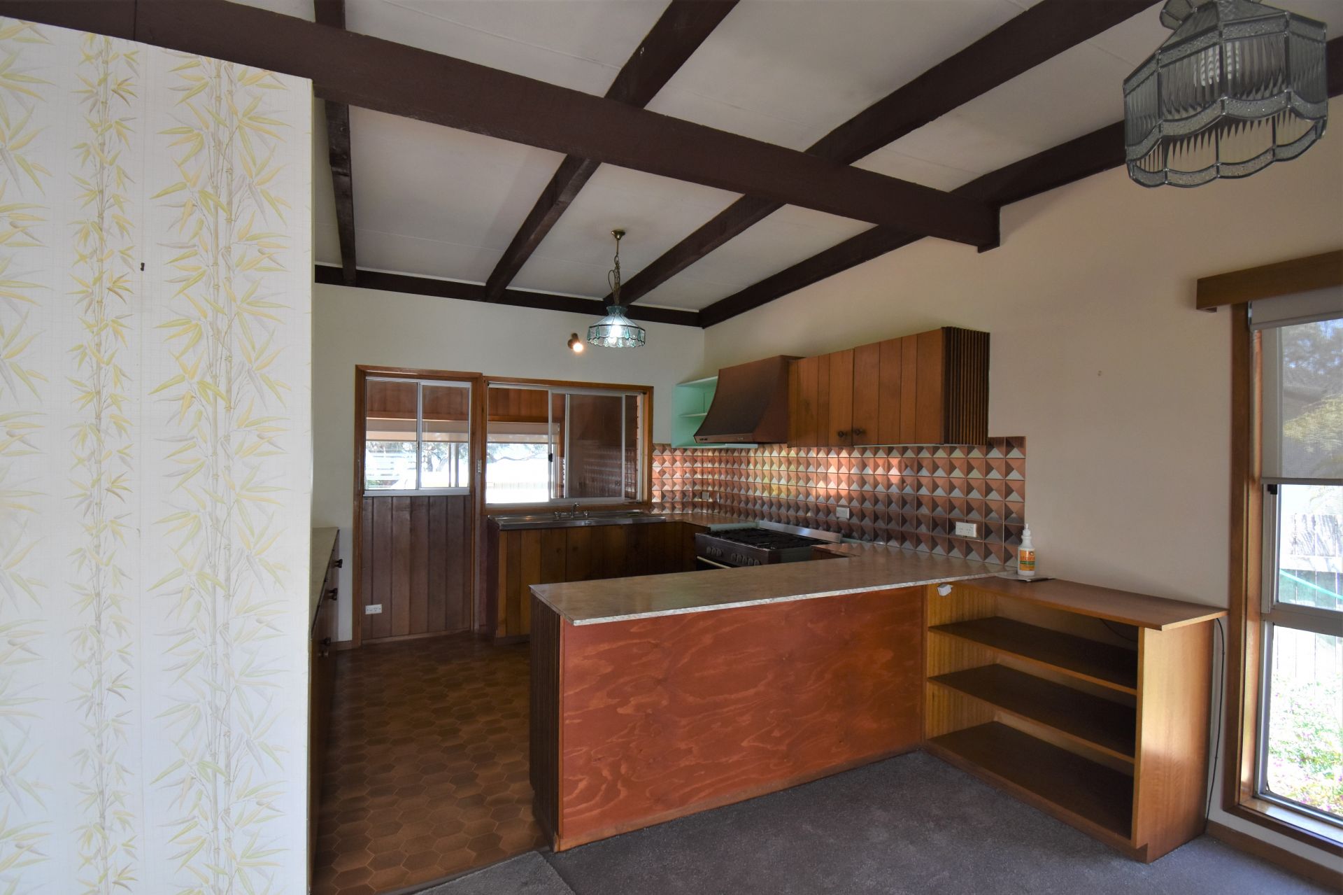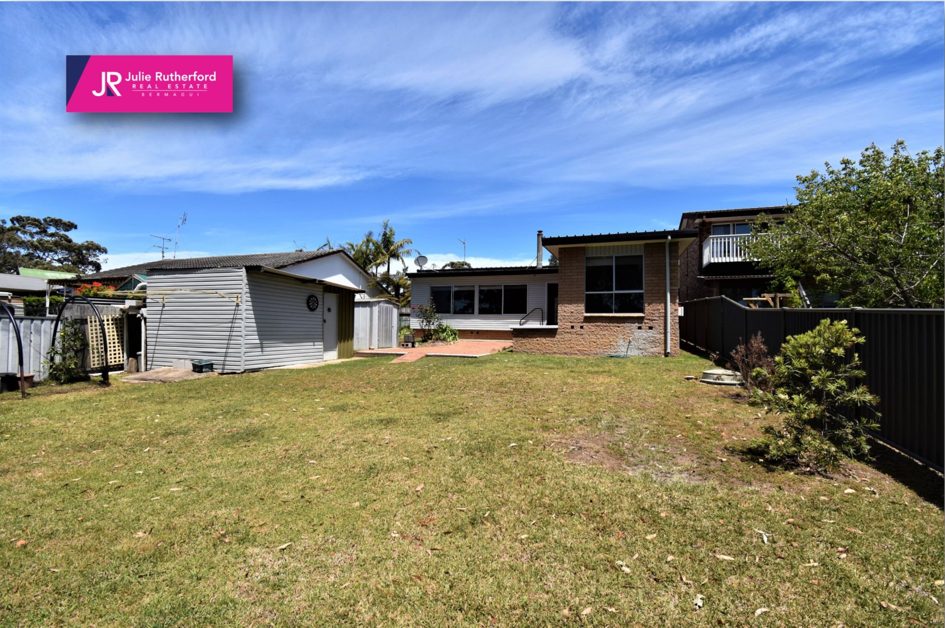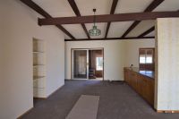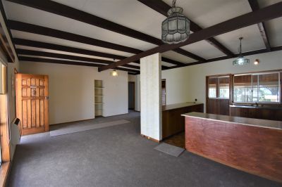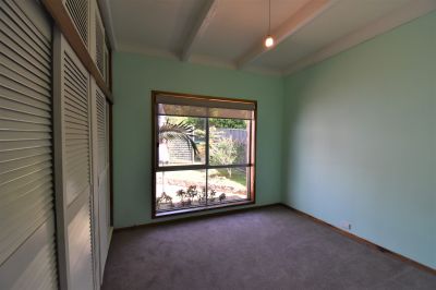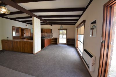 The brick veneer home features raked ceilings, open plan kitchen/dining/living area with enclosed sunroom, separate large garage and garden shed. Will suit small family or couple.
