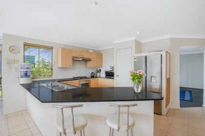 - Spacious kitchen, complete with a breakfast bar and gas cooking facilities, overlooks the adjoining living and dining area, creating an ideal space for gatherings with family and friends.