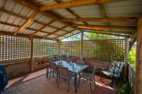 • A paved courtyard surrounded by attractive low maintenance gardens with a covered pavillion - a great place to relax and entertain guests.