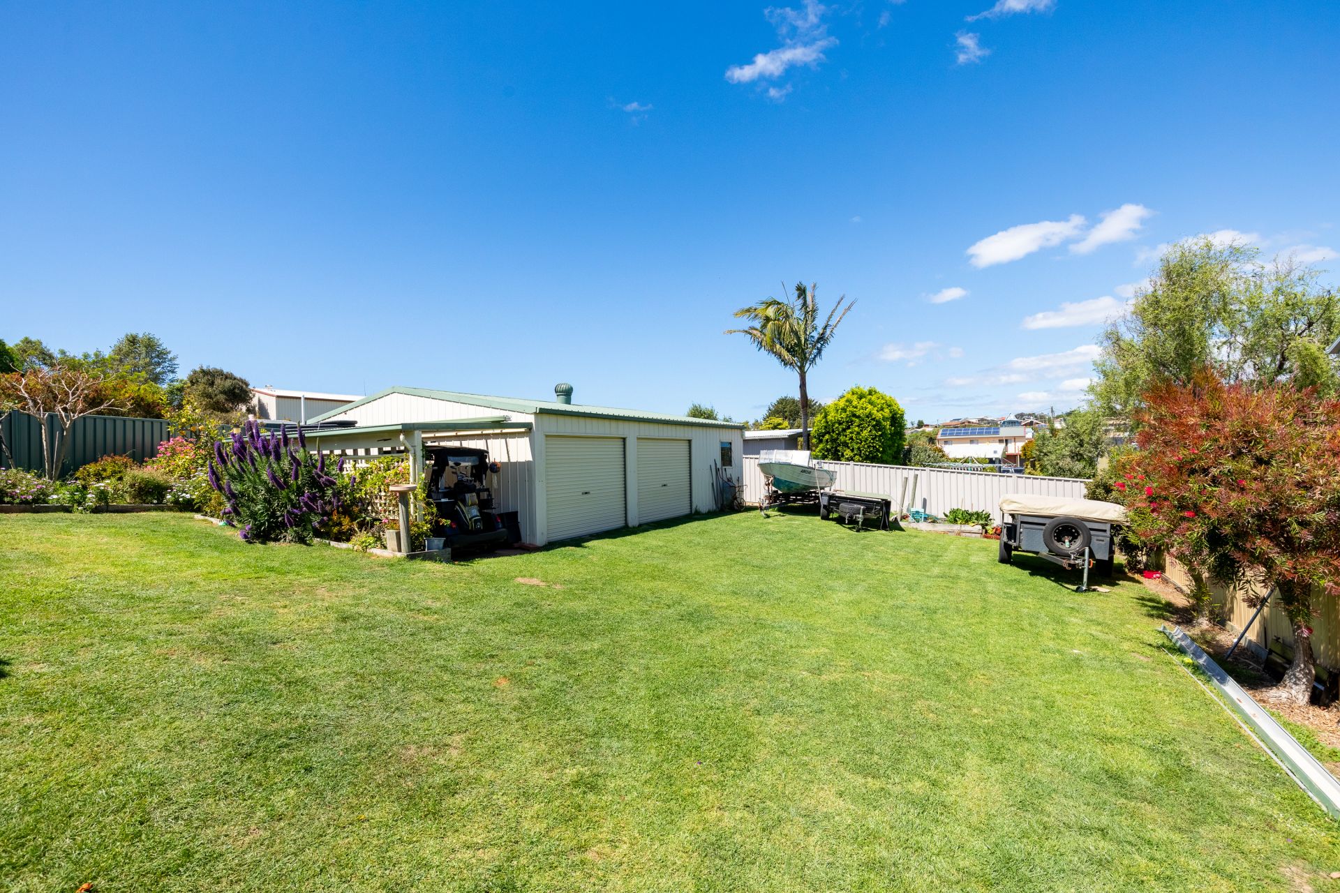 - Large 9m x 7.5m double garage with storage/workspace and additional toilet, power and attached carport plus under house storage – perfect for all the toys