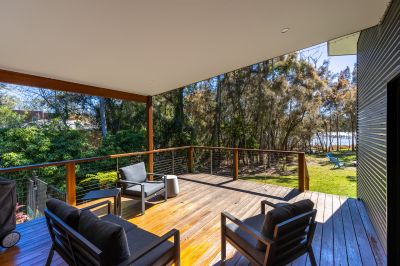 - Entertaining deck capturing stunning views of Wallaga Lake doubles as storage for lake adventure equipment