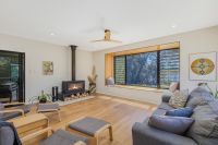 - Light-filled open plan living with reverse-cycle air conditioning, wood heater, and a large picture window framing the lake outlook