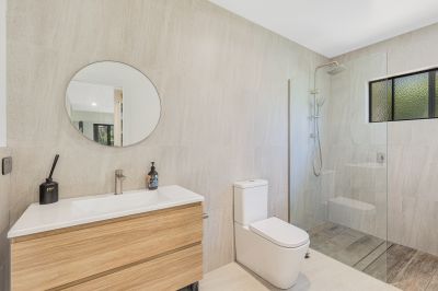 - Two modern bathrooms, including a spacious main with walk-in shower