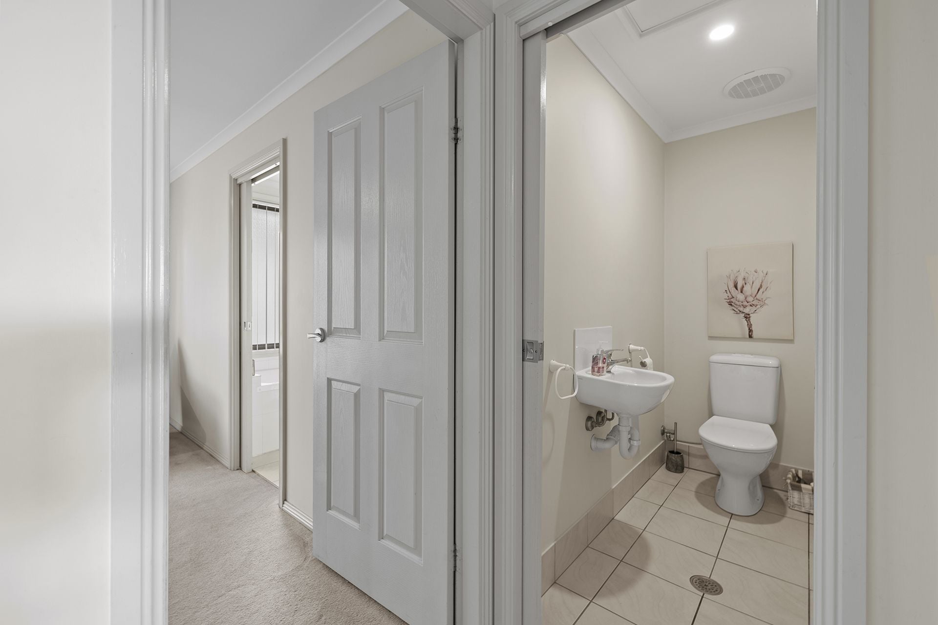 The home features 3 bedrooms and 2 bathrooms, thoughtfully designed across upstairs and downstairs living for comfort and flexibility. The main bedroom includes a walk in robe and private ensuite, while the two additional bedrooms are fitted with built-in robes, providing excellent storage throughout.